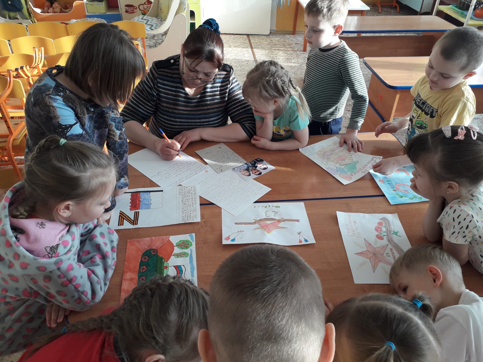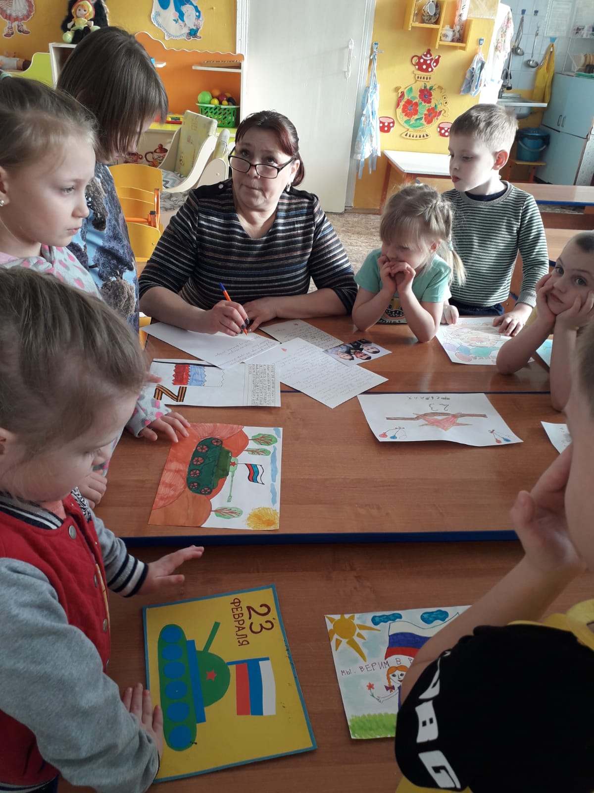 дошли до своего адресата. Наша великая Родина – Россия — всегда стояла на защите интересов народов, нуждающихся в помощи. И сегодня российские солдаты — помогают обрести безопасность и уверенность в завтрашнем дне. Мы хотим сказать, что благодарны солдатам, что восхищаемся их мужеством. Пусть от наших писем им станет чуточку радостнее. Так как наши ребята ещё не умеют писать, они нарисовали рисунки, в которых нет войны, а только доброта и красота мирной жизни. А вместе с воспитателем