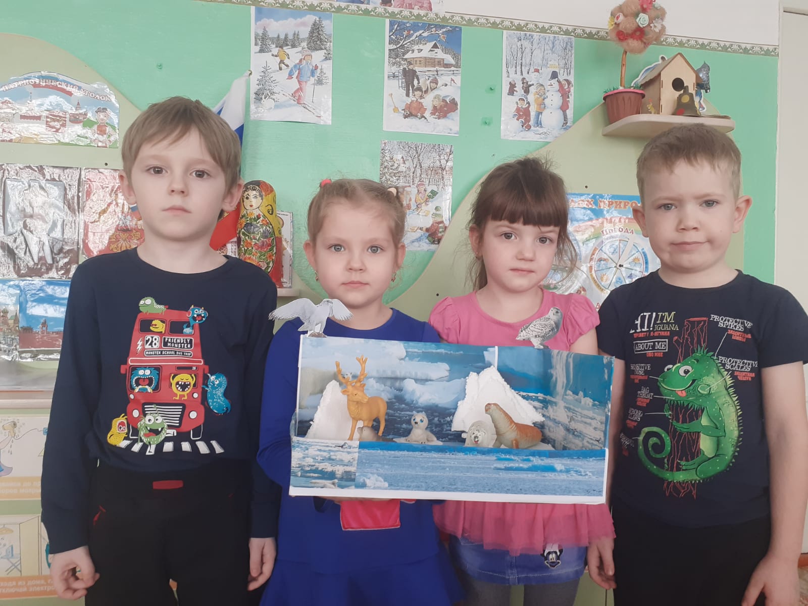 С большим удовольствием поучаствовали в викторине загадок. Итоговым мероприятием в нашей группе выполнена коллективная работа макет «Арктика».