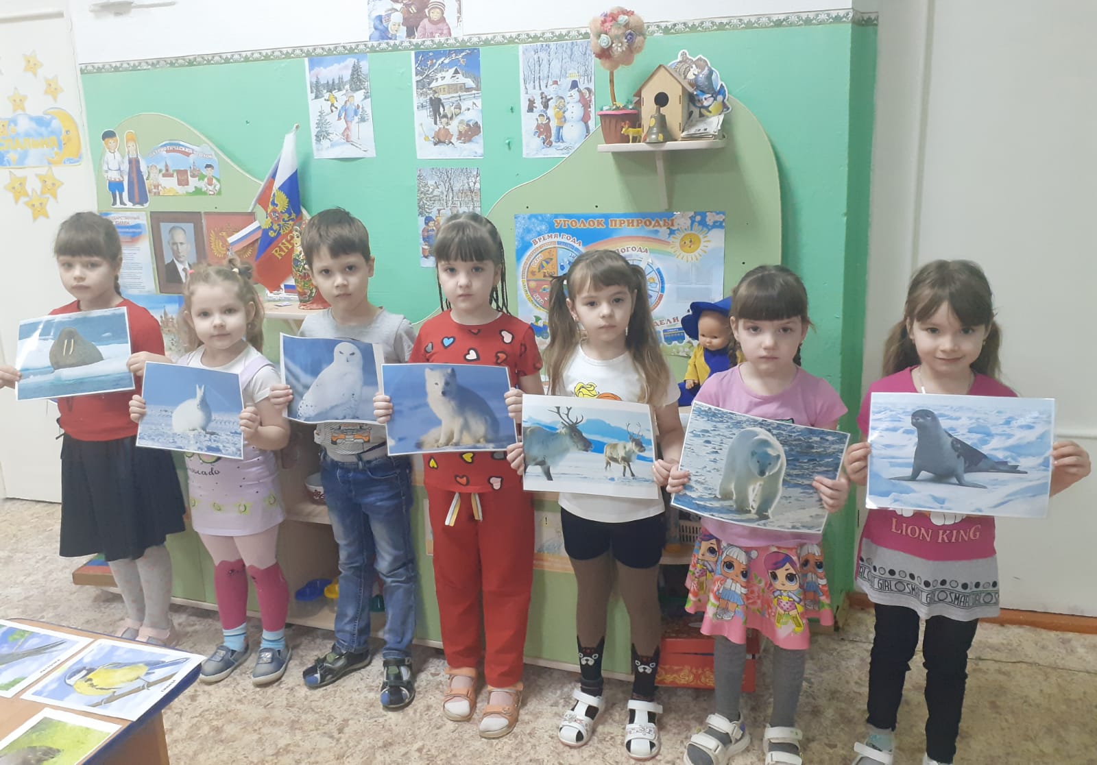 В подготовительной группе «Солнышко» прошла тематическая неделя «Животные и птицы Арктики. Неделя прошла интересно и увлекательно. Ребята узнали, какие животные живут в Арктике. Провели беседу о животных холодных районов, «Чем отличается Арктика от Антарктиды», «Кто такие пингвины», «Зачем моржу бивни?». Вместе с детьми решали проблемные ситуации «Могут ли встретиться белый медведь и пингвин?», «Почему белый медведь не живет в лесу». Дети побывали в роли ученых на ледоколе «Арктика». Проводили опыты «Зависимость состояния воды от температуры», свойства снега. Пробовали из разного состояния снега слепить снежок. Делали выводы. Рассматривали иллюстрации и фотографии животных и птиц Арктики и Антарктиды. На занятиях по художественному творчеству лепили пингвинов, выполняли аппликацию «Белый медведь», рисовали «Северное сияние».