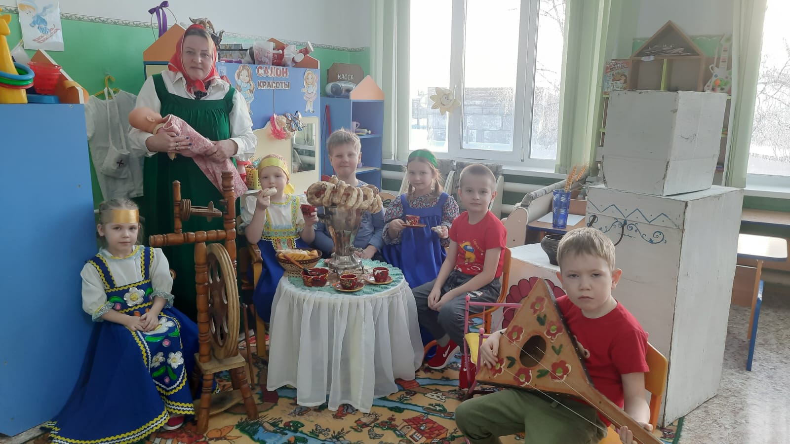 В Муниципальном бюджетном дошкольном образовательном учреждении «Тюкалинский детский сад № 8» подготовительной группе «Солнышко» прошло развлечение по нравственно- патриотическому воспитанию «Посиделки у хозяюшки». Дети узнали о русской избе и традициях русского народа – посиделки. Познакомились с внутренним убранством русской избы. Ребята с большим удовольствием рассматривали предметы народного быта. Изучили новые русские пословицы и поговорки, отгадывали загадки, слушали русскую народную музыку. Играли в русские народные игры «Ручеек». Все это воспитывает уважение, интерес к обычаем старины, к русскому фольклору. Дети были одеты в русско-народные костюмы. А в гости приходила «Гостюшка» и рассказала ребятам о традициях русского народа. В конце развлечения дети слепили из соленого теста бублики к чаю.