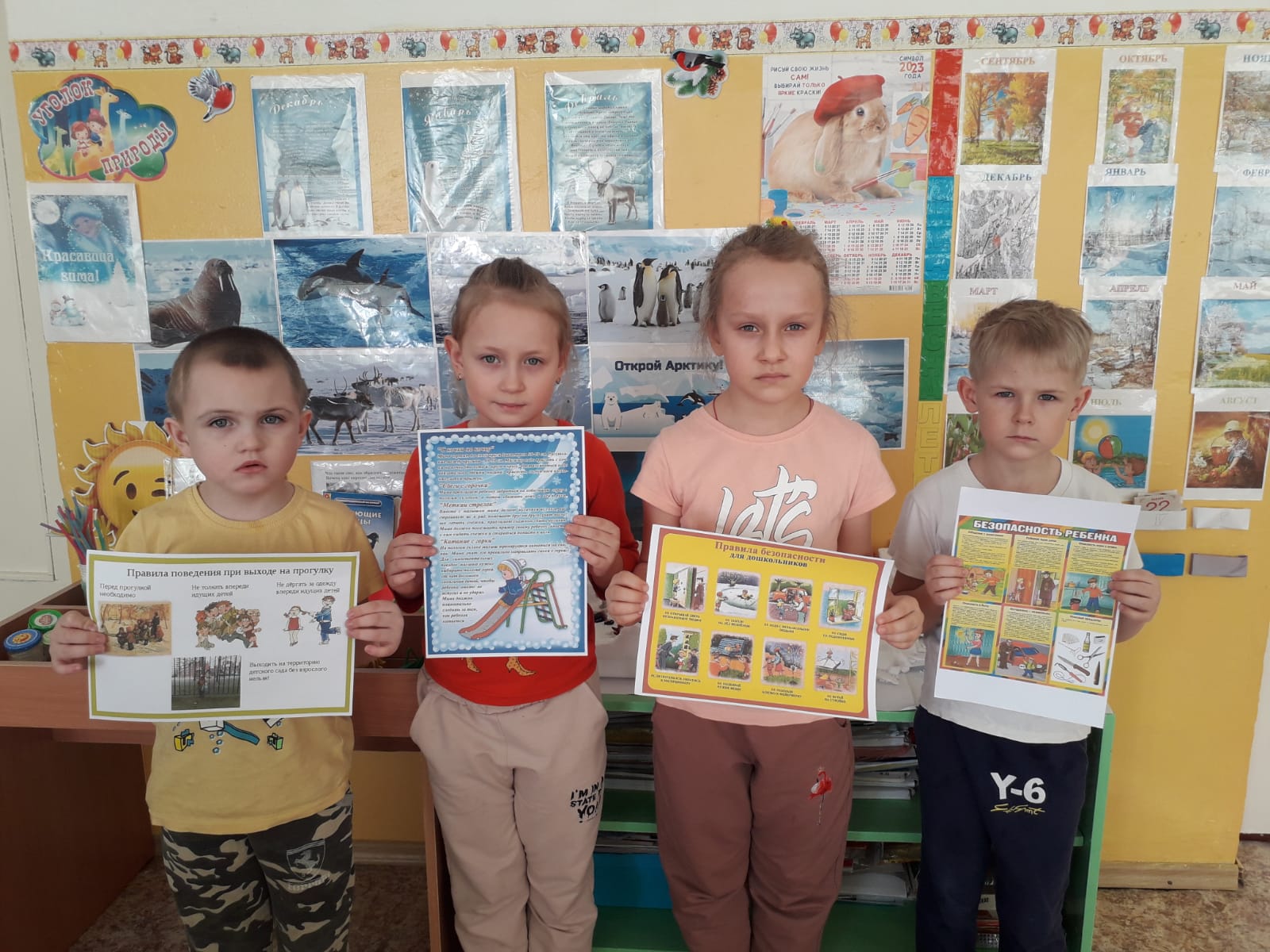 В совместной деятельности педагога с детьми проводились беседы: «Незнакомые предметы опасны», «Опасные ситуации: контакты с незнакомыми людьми», «Ребенок и огонь», «Правила поведения на участке детского сада во время прогулки», «Уроки безопасности», «Один дома», направленные на формирование первоначальных навыков поведения на улице и в транспорте, при опасных для жизни ситуациях в быту, общении с незнакомыми людьми и при возникновении пожара.
