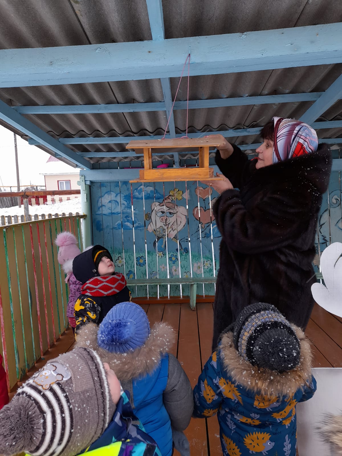 беседовали о том, зачем нужно заботиться зимой о птицах, как живут зимой животные. Дети с интересом рассматривали иллюстрации при чтении художественных произведений. Отгадывали загадки, узнавали и называли зимующих птиц. На занятиях по художественному творчеству лепили птичек. Играли с детьми в дидактические игры, а подвижные игры на прогулке доставили большое удовольствие ребятам. На прогулке наблюдали за птицами, повесили кормушку. Теперь мы каждый день подкармливаем птиц пшеном, семечками, хлебными крошками. Так мы учимся заботиться о птицах. Дети испытывают радость от осознания того, что подкармливая птиц, они могут спасти их от гибели.