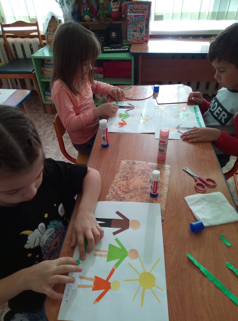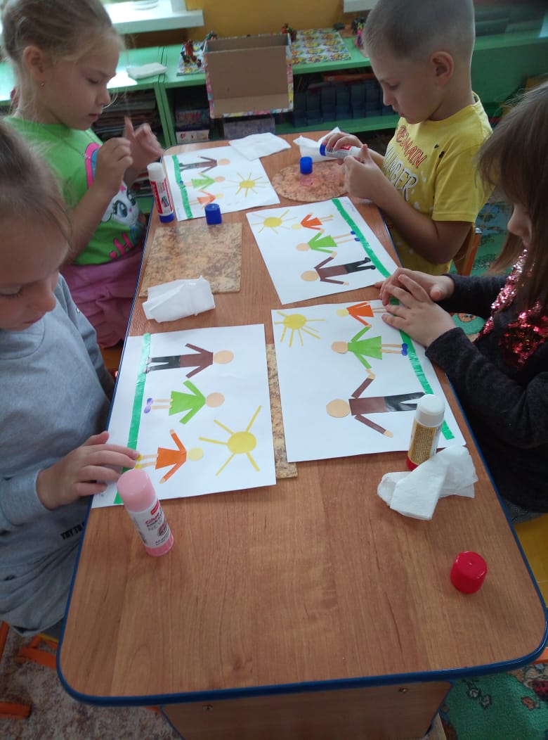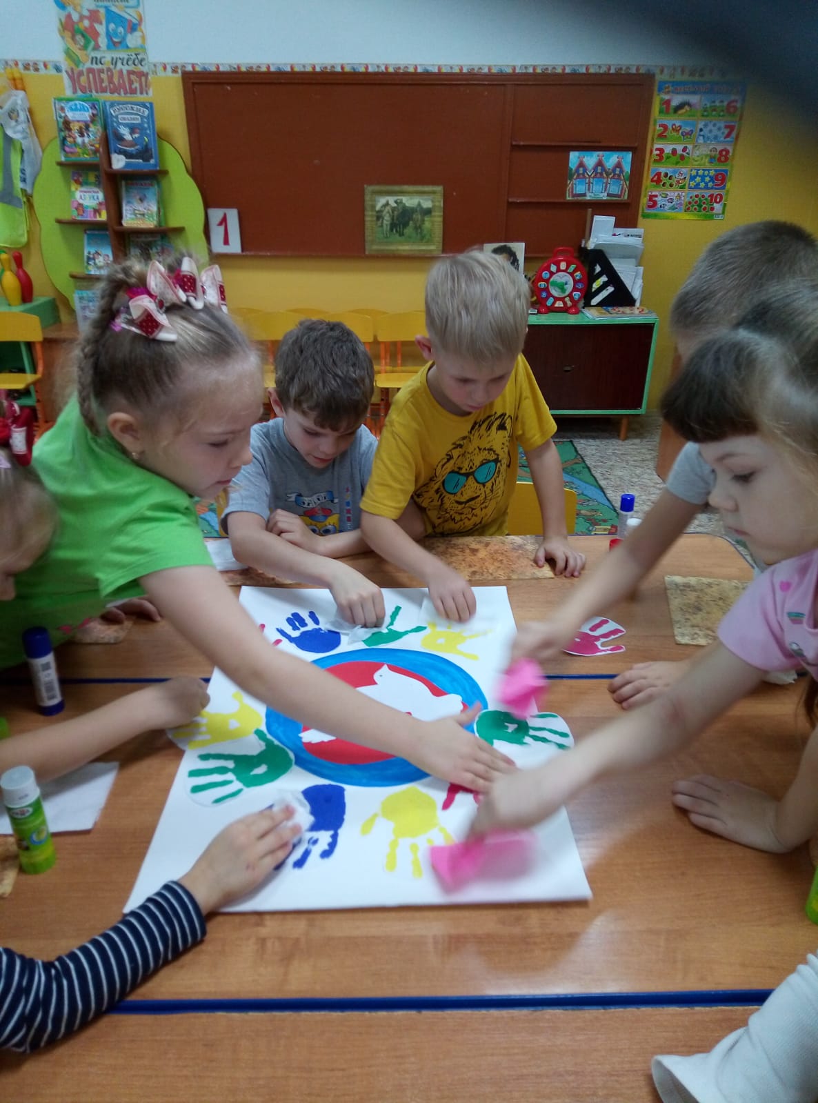 С детьми были проведены тематические занятия, на котором дети узнали о празднике, о любви русского народа к своей Родине, о подвигах, совершенных во имя освобождения родной земли. Итоговыми мероприятиями стали: Коллективная аппликация «Мы хотим дружить», развлечения «День народного единства», выставки художественного творчества.