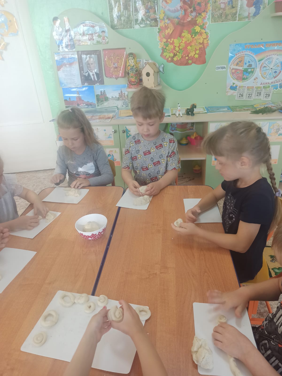 В нашем детском саду с 26 сентября по 30 сентября прошла тематическая неделя «Хлеб всему голова». Неделя получилась очень насыщенной и интересной. В течение недели дети знакомились с тем, как выращивают хлеб, как он «приходит» к нам на стол, рассматривали зерна пшеницы, знакомились с техникой, которая выходит на поля, чтобы посадить, а затем и собрать зерно, проследили путь от зёрнышка пшеницы до вкусного румяного каравая на столе,  узнали много нового о труде земледельцев. Во время бесед дети узнали о значении хлеба в жизни человека, о людях, которые выращивают хлеб. Мы пытались объяснить ребятам что хлеб — результат нелегкого труда тружеников села. Рассматривали картины, читали сказки, поиграли в дидактические игры, пальчиковые игры. Провели экспериментирование «Свойство муки». Из соленого теста лепили хлебобулочные изделия. Итоговыми мероприятием по теме «Хлеб — всему голова» стали: сюжетно-ролевая  игра «Магазин», выставки хлебобулочных изделий из соленого теста.