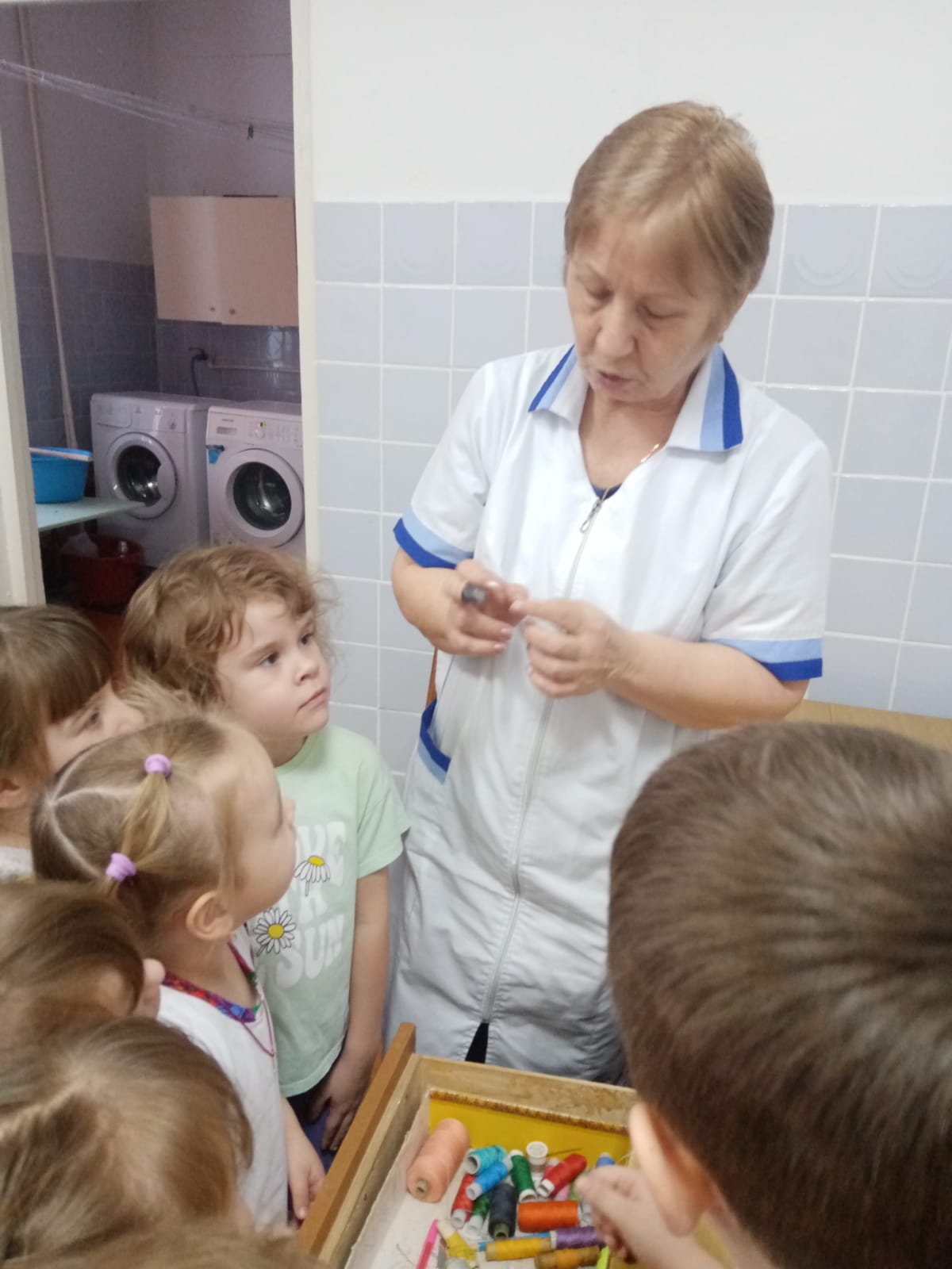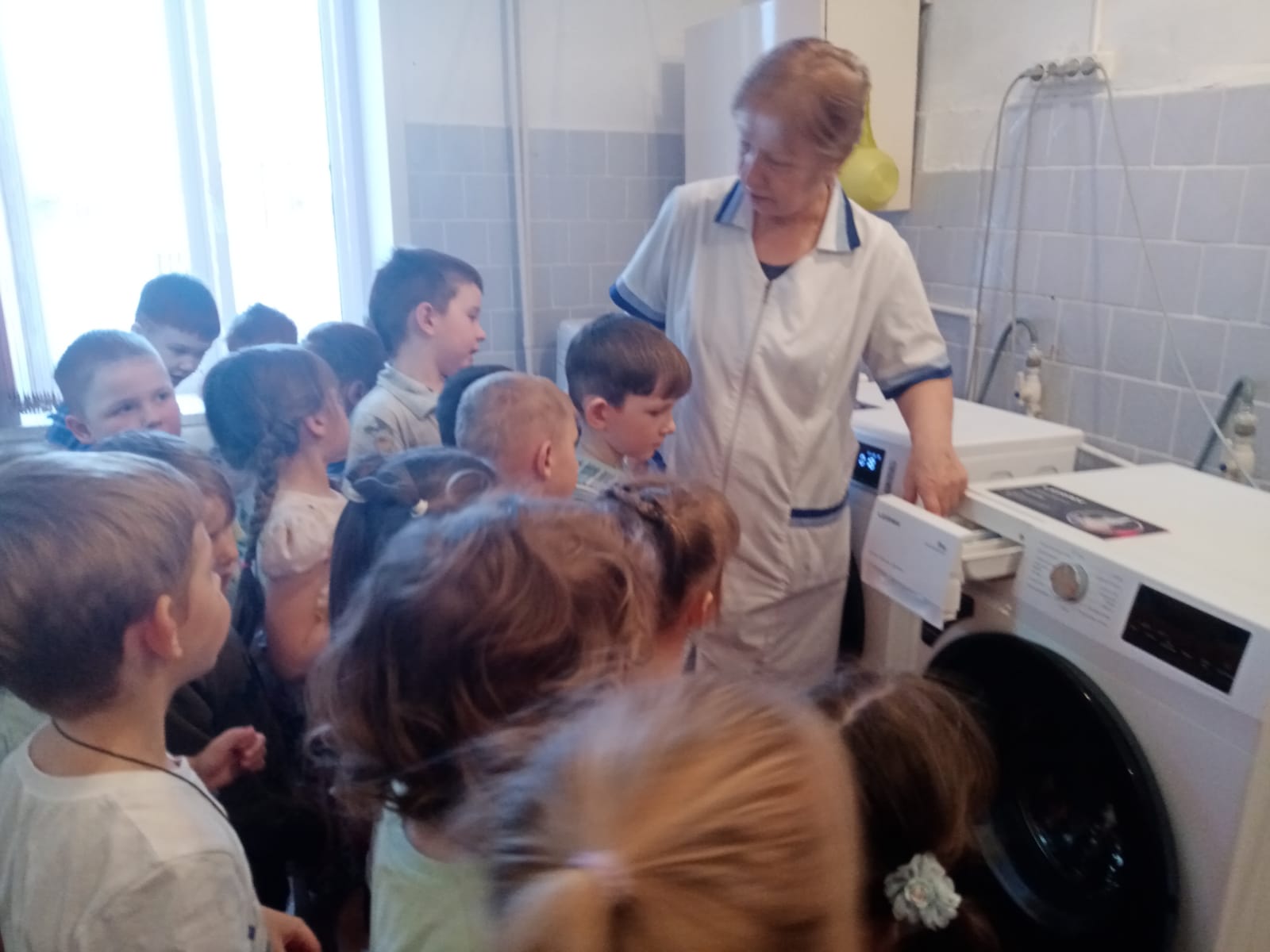 Дети старшей группы «Пчелки» всю неделю знакомились с профессиями, которые нужны в детском саду. Сегодня они посетили прачечную детского сада. Но перед тем, как пойти туда, мы с ребятами вспомнили правила поведения. В прачечной детей приветливо встретила Надежда Михайловна - машинист по стирке белья. Надежда Михайловна рассказала о том, что наш детский сад большой, в нём много детей, поэтому работы в прачечной всегда много. Облегчает труд современная «Чудо – техника». Надежда Михайловна показала ребятам стиральные машины, рассказала о том, как они работают. Дети увидели, где хранятся чистые и выглаженные полотенца, постельное бельё, халаты и косынки сотрудников детского сада. По ходу рассказа дети задавали много разных вопросов. На все свои вопросы дети получили ответы. Во время экскурсии ребята узнали много нового и интересного, узнали, как много труда вложено, чтобы полотенца и постельное белье всегда были чистыми и аккуратно выглаженными. Такие экскурсии расширяют кругозор детей, воспитывают бережное обращение к вещам, уважительное отношение к труду взрослых, чувство гордости за людей таких профессий.