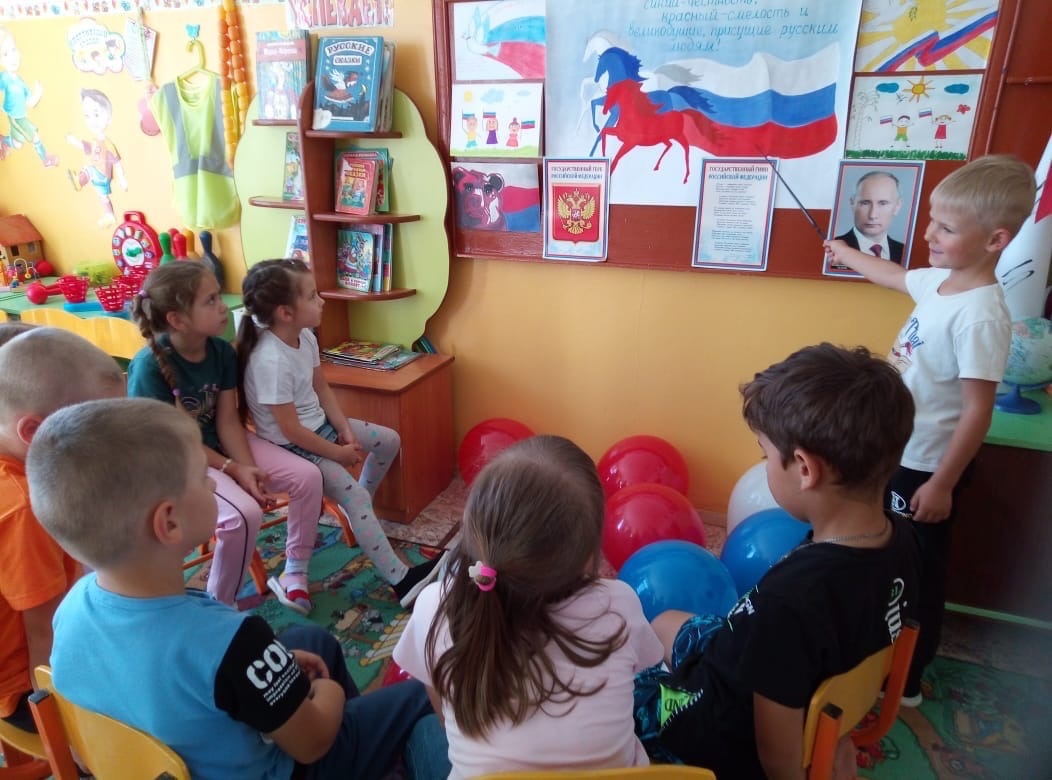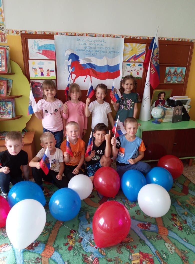 22 августа в 1 подготовительной группе прошёл патриотический праздник " День Российского флага". В этот день прошло развлечение "День флага" на котором ребята узнали истории появления Российского флага и его значимости для нашего государства. Главная цель праздника: рассказать детям историю праздника важность и значение государственных символов России. Была оформлена выставка творческих работ на тему: "Флаг Родины". Все работы получились красочными. Ребята приняли участие в спортивном мероприятии "Родина". Играли в игры проводили эстафеты, читали стихи. Приняли участие в украшения окон.