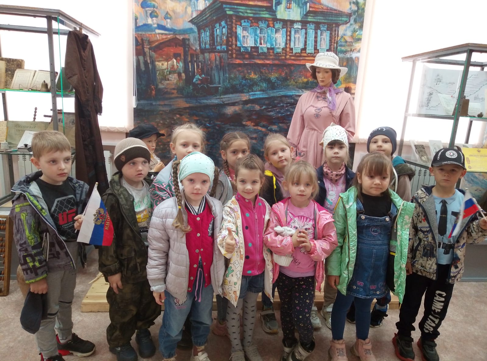 Для детей была проведена очень интересная и познавательная экскурсия по залу музея с разными экспозициями, которые помогали понять и увидеть быт наших предков, узнать интересные истории об отдельных экспонатах музея.