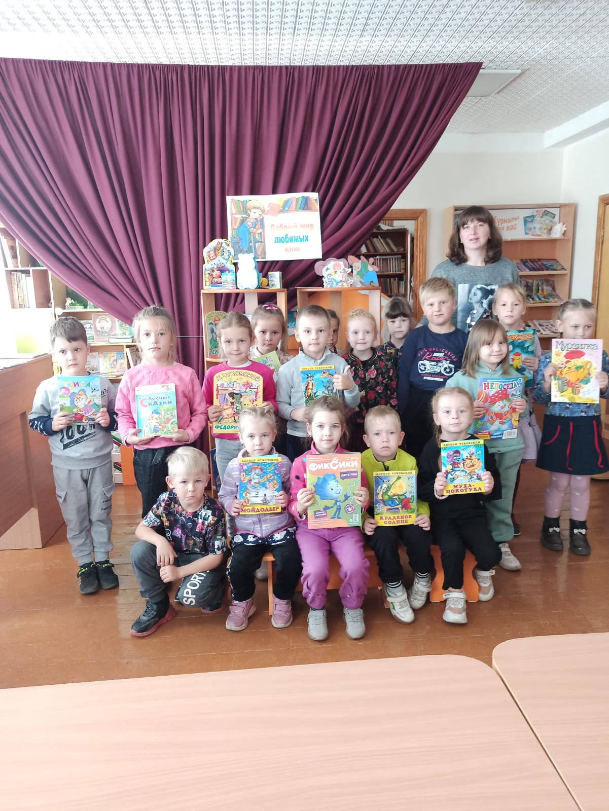 правильном обращении с книгами, как выбирать книги и как вести себя на абонементе и в читальном зале. Ребята узнали, по какому принципу они располагаются в библиотеке, что больше любят читать дети. Ребята с большим восторгом, а кто и затаив дыхание, смотрели на множество книг в красивых переплётах, на замечательно оформленных стеллажах. Такого количества книг дети ещё никогда не видели. Сотрудники библиотеки приготовили ребятам замечательный сюрприз сказку «Чудесная яблонька». Экскурсия произвела на дошколят огромное впечатление. Уходить из библиотеки детям не хотелось, и они пообещали прийти в библиотеку вместе с родителями. Всем очень понравилось посещение библиотеки. Очень важно приобщать детей к книжной культуре, воспитывать любознательного, грамотного человека.