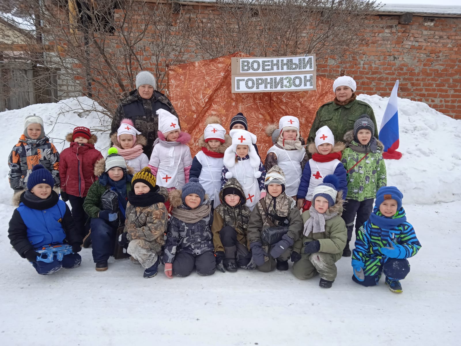 В целях развития системы патриотического воспитания, формирования патриотических чувств и нравственных качеств личности в нашем детском саду с 24 января стартовал месячник оборонно-массовой и военно-патриотической работы под единым девизом: «Воинский долг – честь и судьба!» В рамках месячника проведены военно-спортивные мероприятия: «Мы солдаты», «Смелые, ловкие, быстрые», «Мы сильные, мы дружные», «Будем в армии служить», в которых большое место отводилось военизированным, подвижным играм, вводились элементы соревнований. Эти мероприятия были очень яркими, веселыми и запоминающими. Определенная роль в этот период отводилась творческим и интеллектуальным мероприятиям.