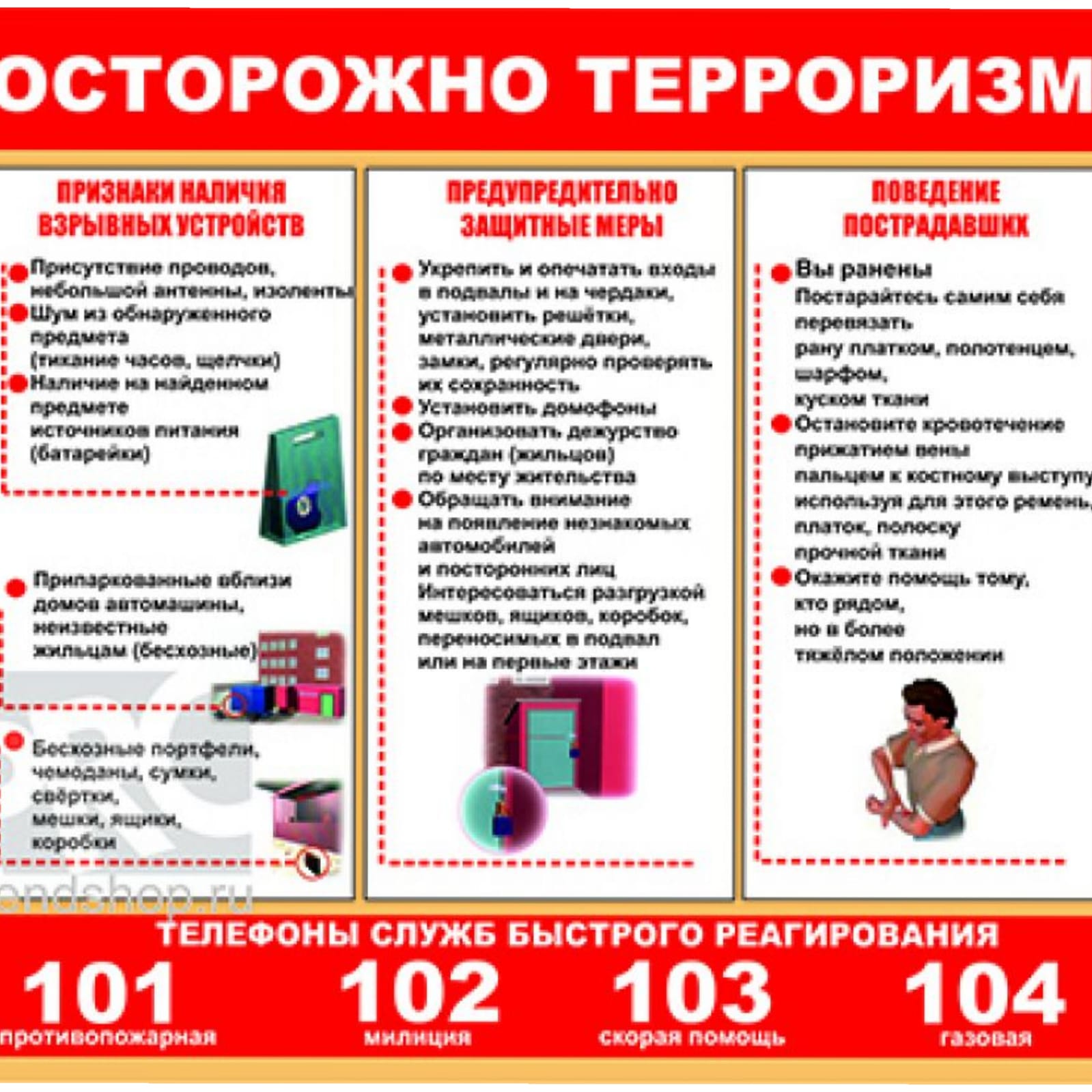Все мы сегодня знаем, что терроризм в любых формах своего проявления превратился в одну из самых опасных проблем! Поэтому перед педагогами нашего детского сада стоит задача в совместной деятельности взрослого и ребенка не только научить дошколят противостоять опасности и защищать себя в экстремальной ситуации, но и формировать представления о мерах предосторожности и возможных последствиях их нарушения, о способах защиты от террористов. Мы стараемся прививать детям навыки уверенного поведения в экстремальных ситуациях и воспитывать чувство бдительность.