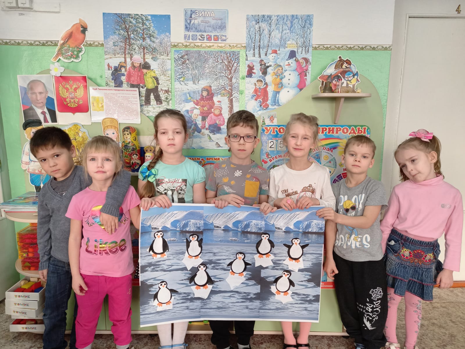 С 24 по 29 января в нашем детском саду прошла тематическая неделя Животные Арктики и Антарктики. Дети узнали, что полярные районы - это Арктика на крайнем Севере и Антарктика на крайнем Юге. Мы рассмотрели их на глобусе, узнали о суровом климате, полярной ночи и северном сиянии. Познакомились с животными Арктики и с животными Антарктики. В течение недели ребятишки с большим удовольствием отгадывали загадки о животных Севера, смотрели презентации «Артика и Антарктика», мультфильмы про пингвинёнка Лоло и медвежонка Умку, рассматривали картины и энциклопедии по данной теме, играли в дидактические игры: «Четвёртый лишний», «Найди дорожку", «Чья тень». Так же читали художественные произведения: «Отчего у белого медведя нос чёрный», «Пингвиний пляж", «На льдине», «Цветик - семицветик". А еще лепили животных – пингвинов, белых медведей из пластилина. Итоговыми мероприятием стали: макет «Арктика», изготовлены альбомы «Арктика», «Животные Арктики и Антарктики», аппликация «Пингвины на льдине».