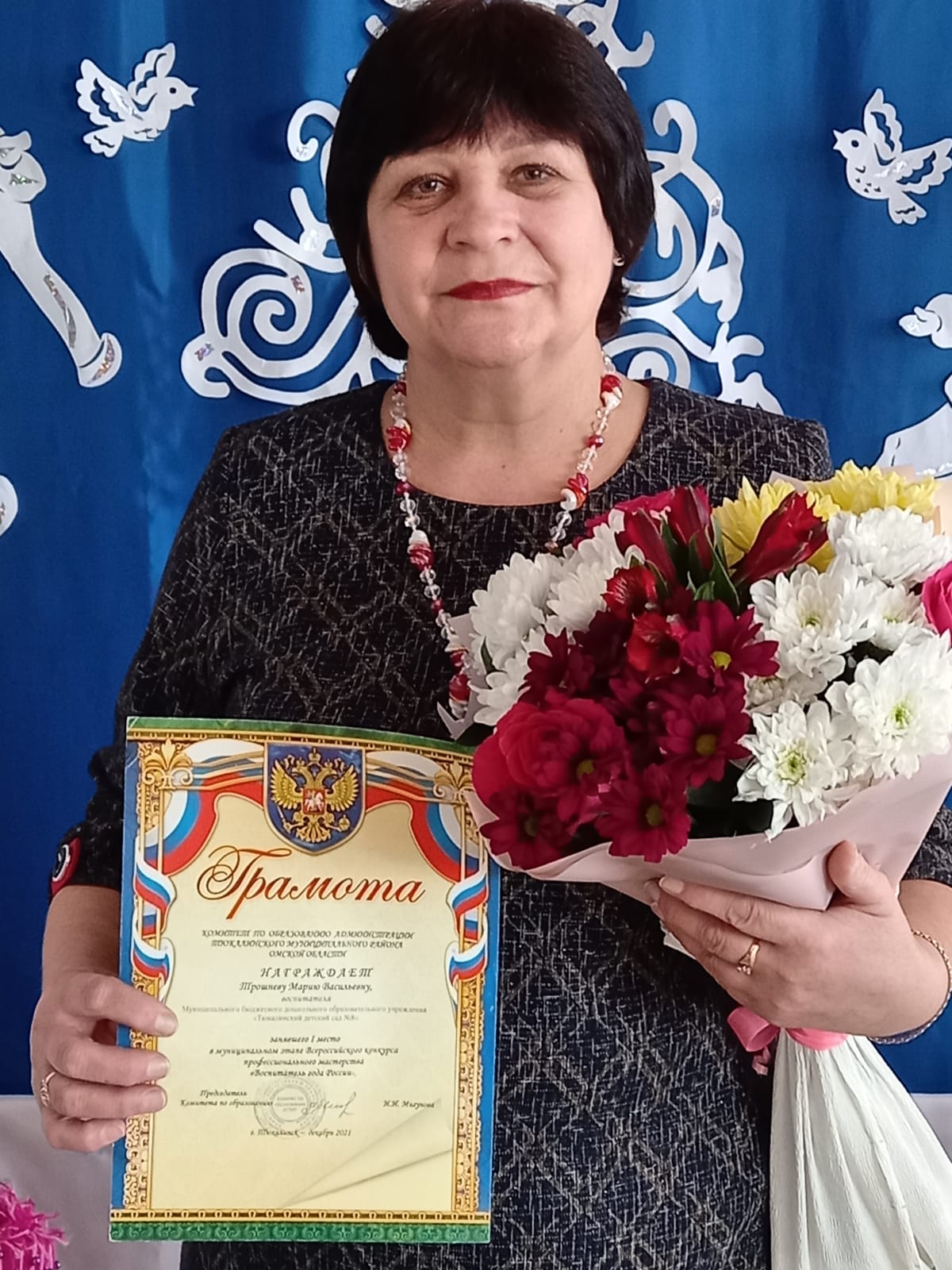 «Волшебная сила искусства плюс волшебная сила игры, плюс прекрасное знание дошкольной педагогики и психологии. И еще – любовь к ребенку» - формула успеха наших воспитателей. В декабре 2021 года прошел Муниципальный конкурс «Воспитатель года». Наш детский сад представляла Трошнева Мария Васильевна. Это очень значимое событие, которое позволяет открывать новые имена ярких, талантливых педагогов, которые становятся примером для других. По итогам конкурса «Воспитатель года России» победителем стала Мария Васильевна. Поздравляем с ПОБЕДОЙ и желаем дальнейших творческих успехов и защитить достойно наш район на региональном этапе конкурса.