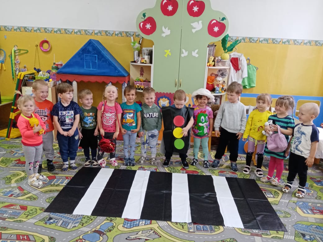В группах в процессе в совместной деятельности педагога с детьми проводились беседы по вопросам «Что такое дорога? Из каких элементов состоит дорога? Что такое транспорт и как себя нужно в нём вести? Что такое светофор? И для чего нужны дорожные знаки?