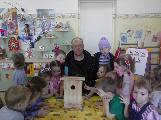 Совместно с родителями был изготовлен скворечник. Он нашёл своё место на участке детского сада.