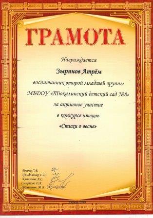 По итогам мероприятия все участники и победители получили грамоты. Мы надеемся, что конкурс чтецов станет доброй традицией в нашей группе.