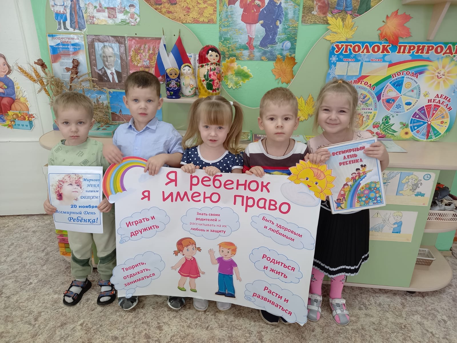 Ежегодно 20 ноября отмечается Всемирный день ребенка. Дата выбрана не случайно – именно в этот день в 1989 году была принята «Конвенция о правах ребенка», которая признала, что ребенку для всестороннего и гармоничного развития личности необходимо расти в семейном окружении, атмосфере счастья, любви и взаимопонимания. В день празднования Всемирного дня ребенка в нашем дошкольном образовательном учреждении прошли мероприятия, приуроченные к этой знаменательной дате. Ребята стали участниками радостного, доброжелательного развлечения «Всемирный день ребёнка» - дарили друг другу улыбки, рисовали солнышко, клеили аппликацию «Дети цветы жизни» . Провели познавательную беседу «Я человек, у меня есть права», играли в игру «На что имеют право дети». Участвовали в конкурсах, а также узнали, почему отмечается этот день, вспомнили сказки, в которых героями выступают дети, отгадывали загадки, стали участниками игр и эстафет «Мы имеем право на досуг и игру». Познакомились с правовой ромашкой, отметили, что все права нужны и важны. В родительских уголках воспитатели разместили информацию о Всемирном дне ребёнка. А еще в нашем детском саду стало традицией в этот день проводить День открытых дверей для родителей. В этот день каждый родитель может побывать на занятиях своего ребенка и окунуться в атмосферу детства.