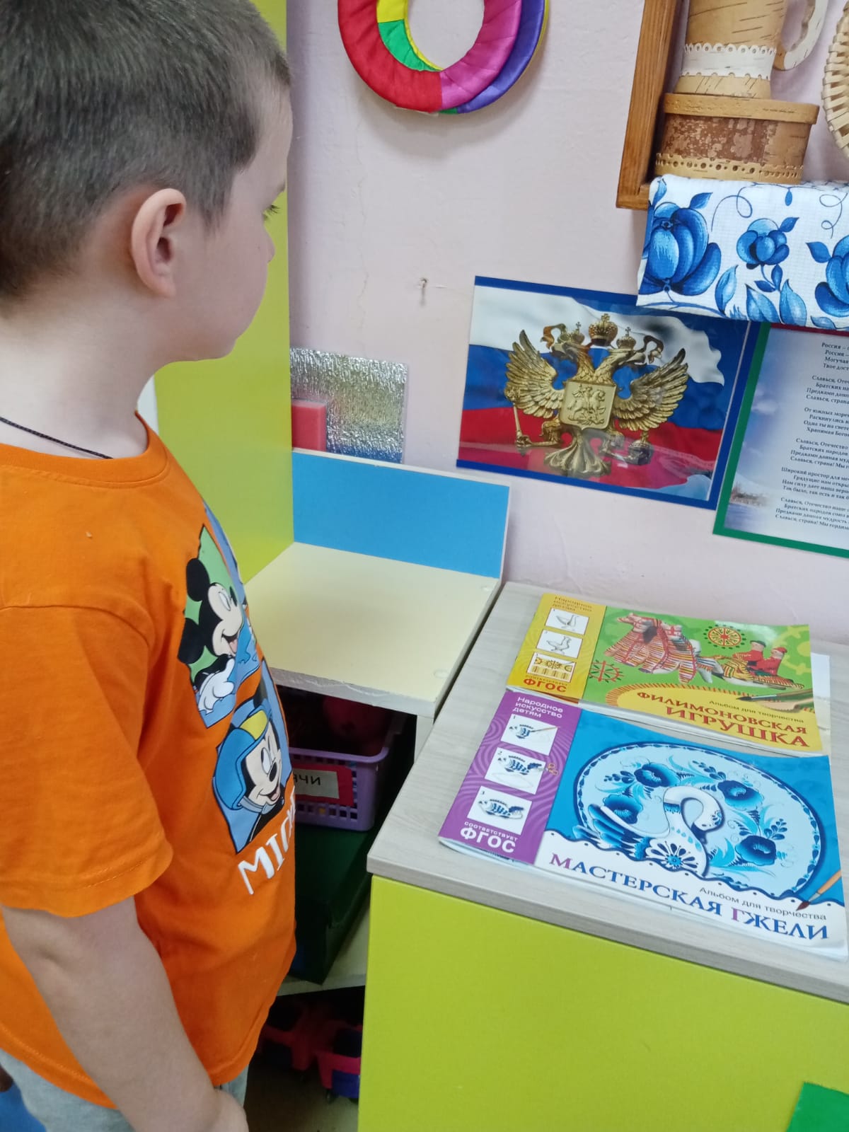 Педагоги рассказали ребятам о значении герба в жизни государства, совместно с детьми рассмотрели денежные знаки, ордена и медали, на которых изображён герб РФ, поделились знаниями о символике изображений: золотого двуглавого орла на фоне красного щита, корон, всадника, чёрного дракона; с интересом прослушали легенду о Георгии Победоносце и чудовищном змее. Проведены дидактические игры «Составь герб», «Найди герб России», «О чём рассказывает герб?», словесные игры «Где можно увидеть герб России, назови». Все ребята почтительно, с уважением относятся к символам нашей страны, растут патриотами, любят Родину и гордятся тем, что мы граждане России. Данные мероприятия позволяют формировать основы коммуникативной и социальной активности, воспитывать любовь к своей Родине, родному краю и способствуют почтительному отношению к Государственной символике.