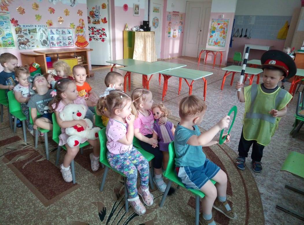 Учили с детьми различать красный, желтый и зеленые цвета. Рассматривали иллюстрации «На улице города», «Транспорт». Познакомились с произведениями С. Маршака «Мяч» и другими. Играли в дидактические игры «Собери автомобиль», «Собери светофор». В художественном творчестве лепили «Разноцветные колеса», рисовали «Дорожка для машин». Играли в подвижные игры, провели беседы. В свободной деятельности дети из конструктора строили дорогу, по которой идут в детский сад. В игровой форме дети повторили правила поведения на улицах и дорогах города. Так же была проведена работа с родителями. В уголке безопасности размещена информация «Все начинается с малого».
