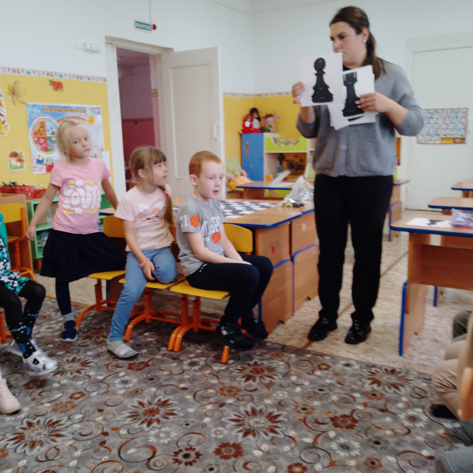 Каждый понедельник в Муниципальном бюджетном дошкольном образовательном учреждении «Тюкалинский детский сад № 8» в подготовительной группе «Гномики» проходит обучение игре в шахматы. Педагог дополнительного образования ЦОЦиГП «Точка роста» Агапова Мария Ивановна в сказочной и игровой форме вводит детей в мир шахмат: знакомит дошкольников с историей развития шахматной игры, используя шахматные сказки, загадки, дидактические игры. Дети знакомятся с шахматными фигурами. Сколько всего квадратиков на шахматной доске, как они называются, из каких линий состоит доска, что такое шахматный центр. На занятии ребята познакомились с понятиями: вертикаль, горизонталь и диагональ, что немало важно при изучении игре в шахматы. Дети получают новые знания и большое удовольствие от занятий обучения игре в шахматы. И ждут с нетерпением новой встречи с Марией Ивановной.