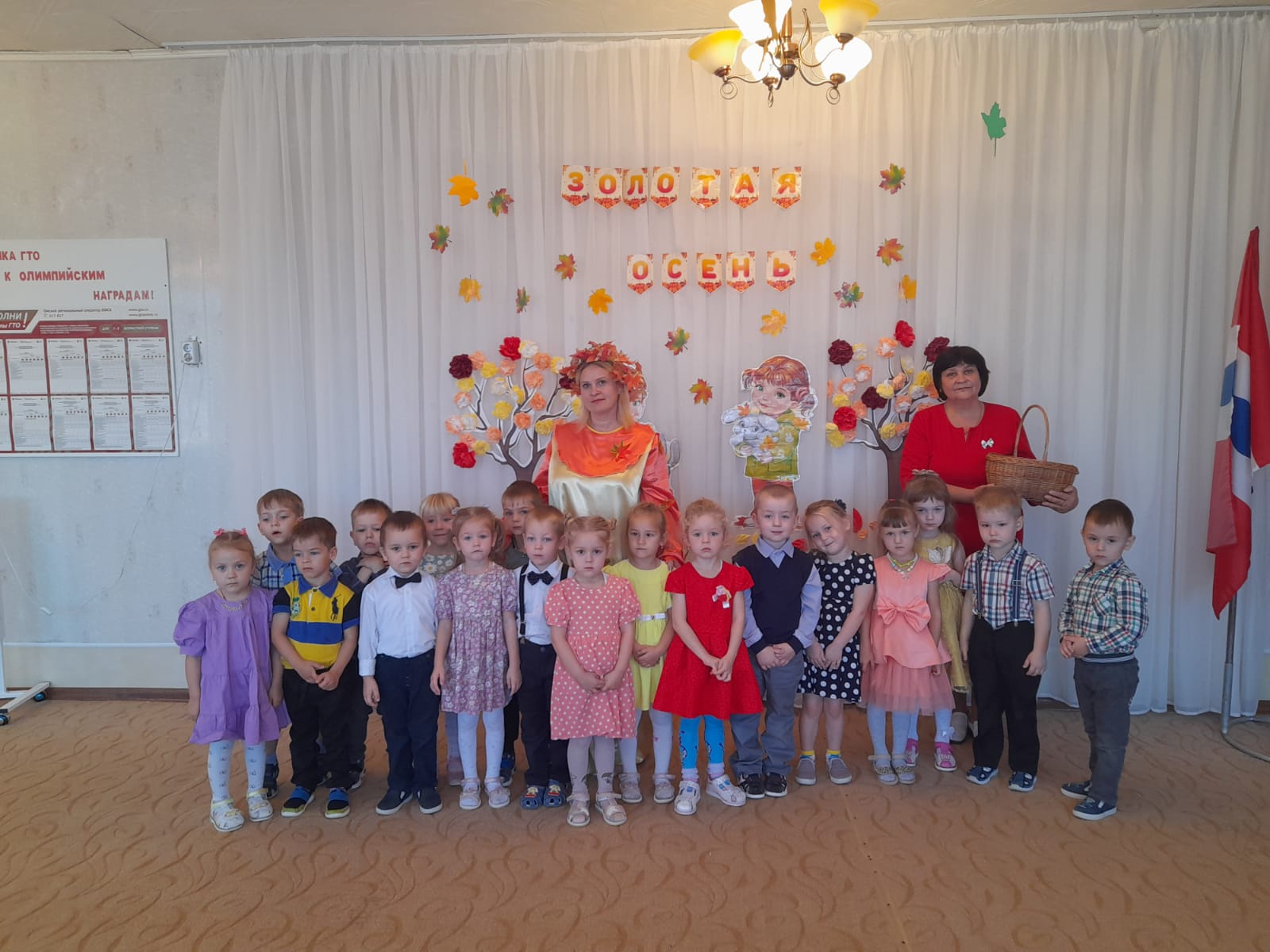 С 19 и 20 октября в нашем детском саду прошли осенние развлечения «Золотая осень». Для ребят это запоминающийся, радостный и яркий праздник, который помогает им закрепить представления об осени как времени года. Осенние листья, овощи, грибы – превратили музыкальный зал в праздник. К ребятам приходила в гости красавица Осень. С осенью дети пели песни, играли на музыкальных инструментах, танцевали с осенними листочками, играли в веселые игры. Это доставило детям большое удовольствие и праздничное настроение! В заключении праздника Осень одарила всех деток подарками: наливными яблочками. Мероприятие было веселым, ярким, увлекательным. Детям надолго запомнится это осенний праздник.